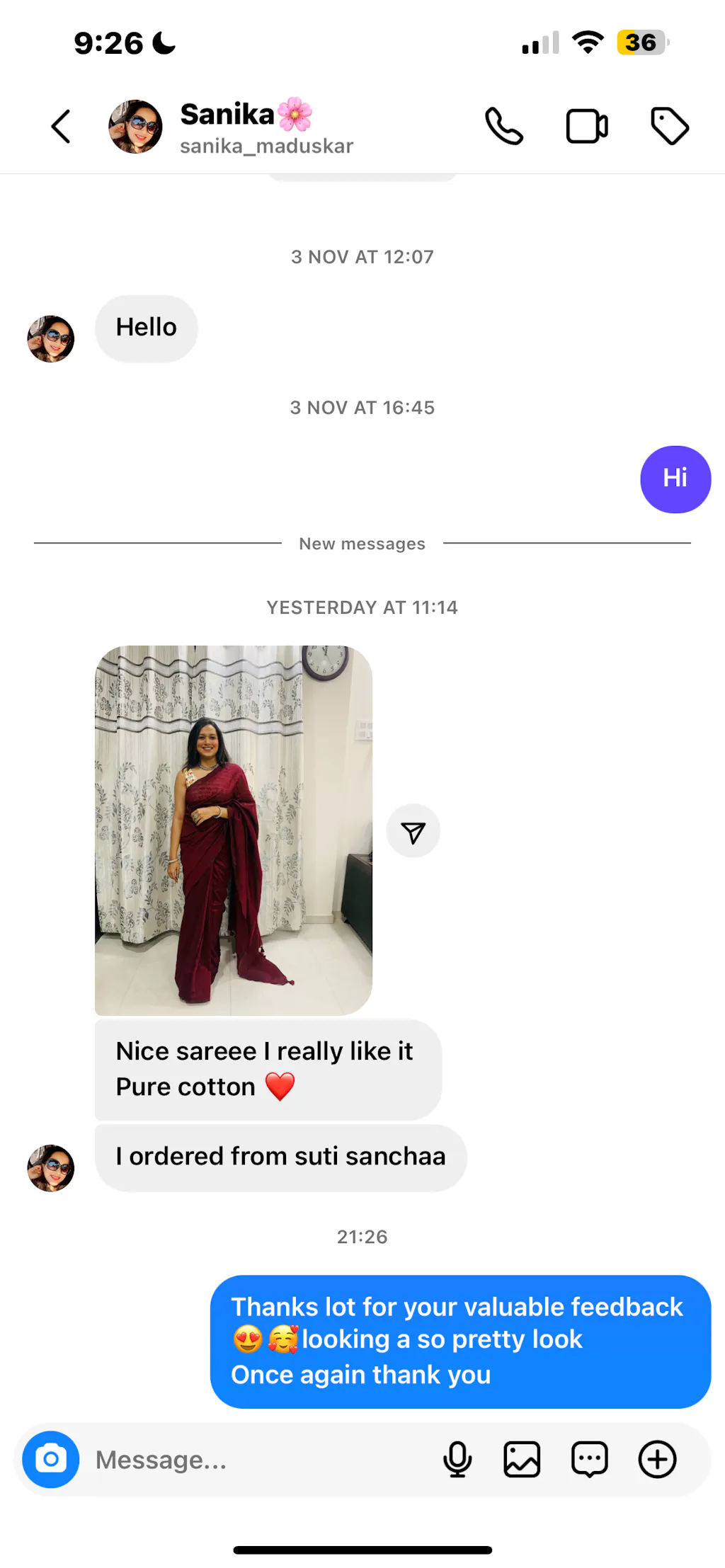 Beautiful saree with good quality fabric. Looks exactly like the pictures, and the delivery was very fast. Really happy with the purchase!