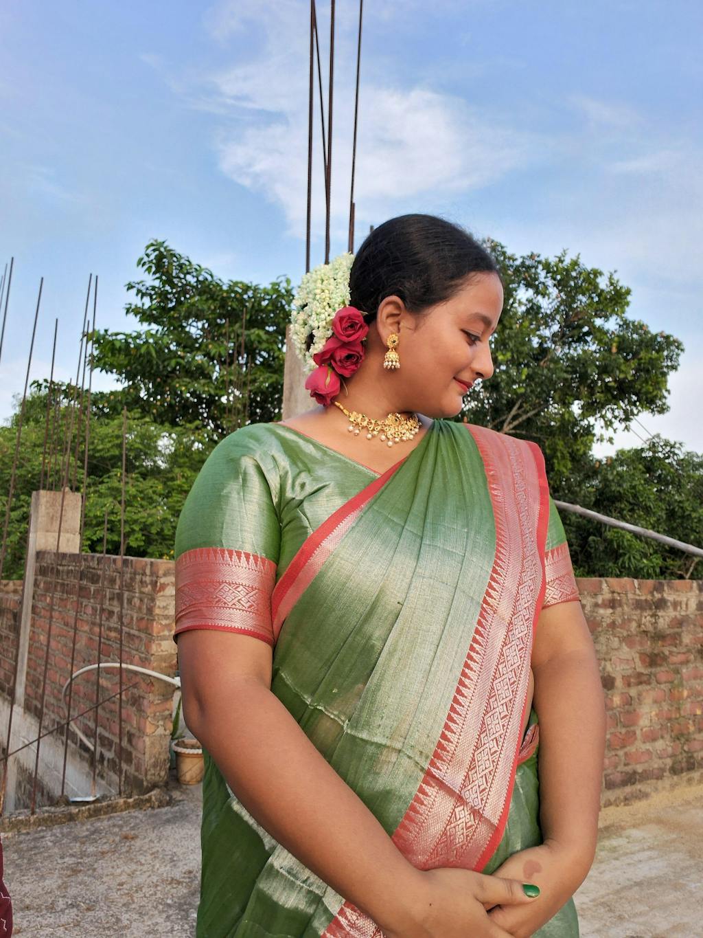 Traditional Tissue Saree with Rich Red Border